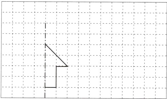 4. 将下面的图形按对称轴补全另一半,再将完整的图形向右平移5格。