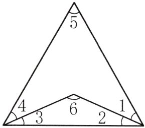 2. 如图,等边三角形内有一个等腰三角形,∠1 = ∠2,∠3 = ∠4,求∠6。图中的等腰三角形按角分是什么三角形?