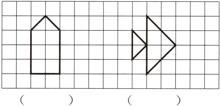 在方格纸上涂色表示各图形的面积,并在下面括号里写出图形的面积。(每个小方格表示1cm²)