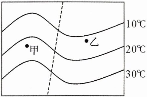 5. 读某地区7月份等温线分布图,甲、乙两地位于同一纬度,虚线表示海岸线,下列判断正确的是 (