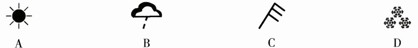 1.“天街小雨润如酥,草色遥看近却无”。下列天气符号代表“小雨”的是 (