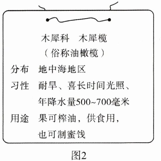 材料二 图1为地中海周边地区简图,图2为植物简介挂牌,图3为适合种植油橄榄的地区的气温年变化曲线和逐月降水量图。
