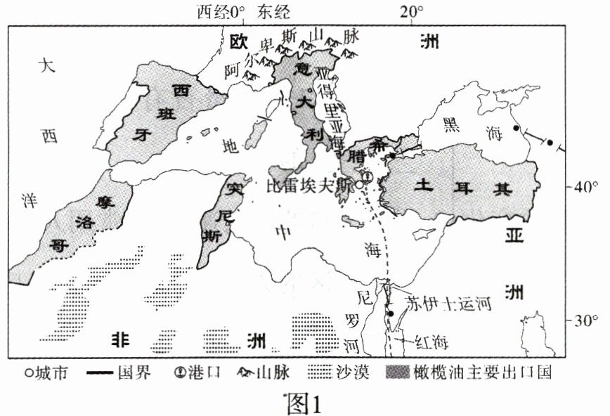 。(2)希腊是世界上橄榄油主要出口国之一。希腊的橄榄油由比雷埃夫斯港出口到中国,走最近的海上航线需经