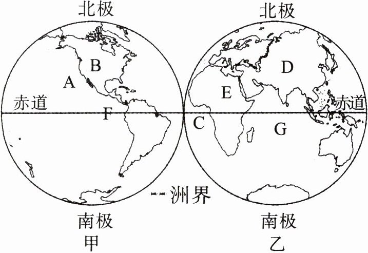 半球。(2) 写出图中字母代表的地理事物名称:A