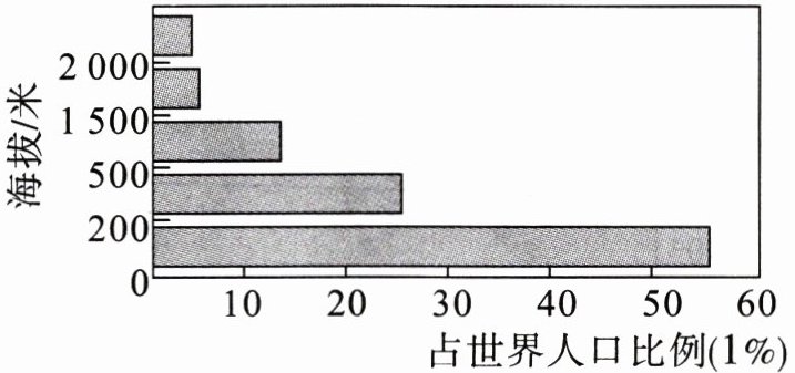 地区。请举例这样的海陆位置能够给人们生活提供的便利。(写出两条)材料二 不同海拔的人口分布示意图。
