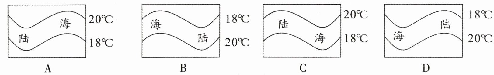8. 下列符合北半球冬季等温线分布的是 (