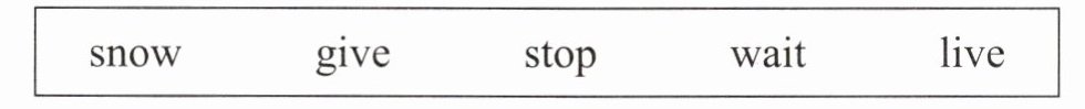 1. lived 2. waits 3. has stopped4. will give 5. was snowing