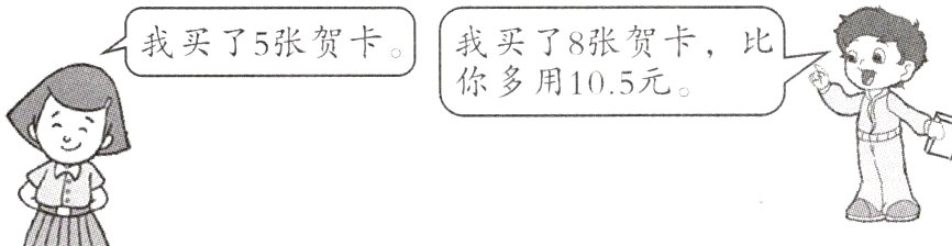 6. 两人买同样的贺卡。根据两人的对话算一算,每张贺卡多少元?