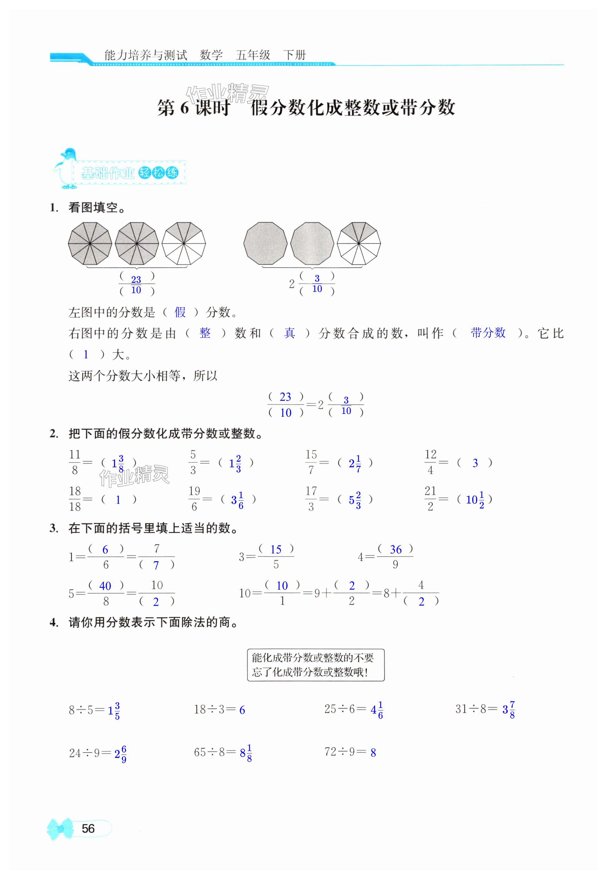注:目前有些书本章节名称可能整理的还不是很完善,但都是按照顺序排列的,请同学们按照顺序仔细查找。练习册 2025年能力培养与测试五年级数学下册人教版 答案主要是用来给同学们做完题方便对答案用的,请勿直接抄袭。