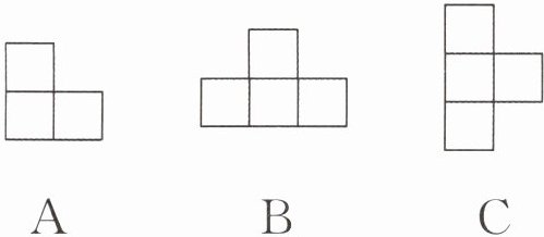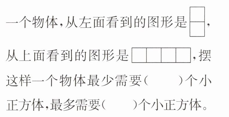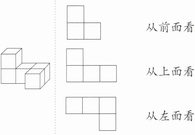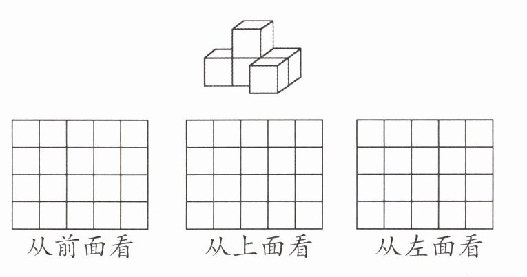 (2)观察右图:从前面看到的图形是( ),从上面看到的图形是( ),从左面看到的图形是( )。