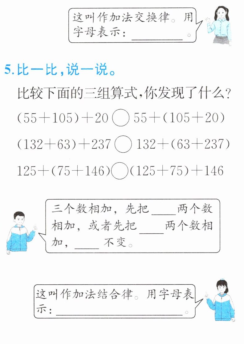 1. 运用加法运算律,在$\square$里填上适当的数或字母。