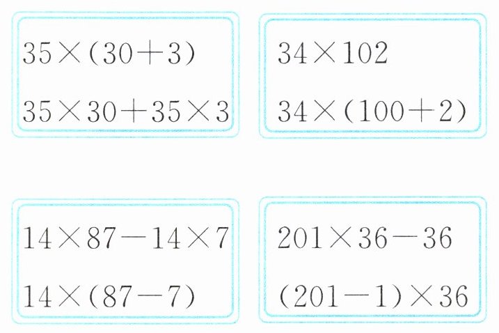 1. 根据乘法分配律在$\square$里填上合适的数,在$\bigcirc$里填上合适的运算符号。