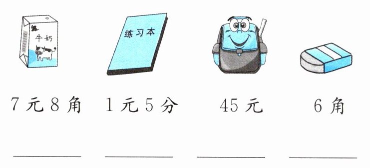 4. 给下面的物品加上价签。(以元为单位,用两位小数表示。)