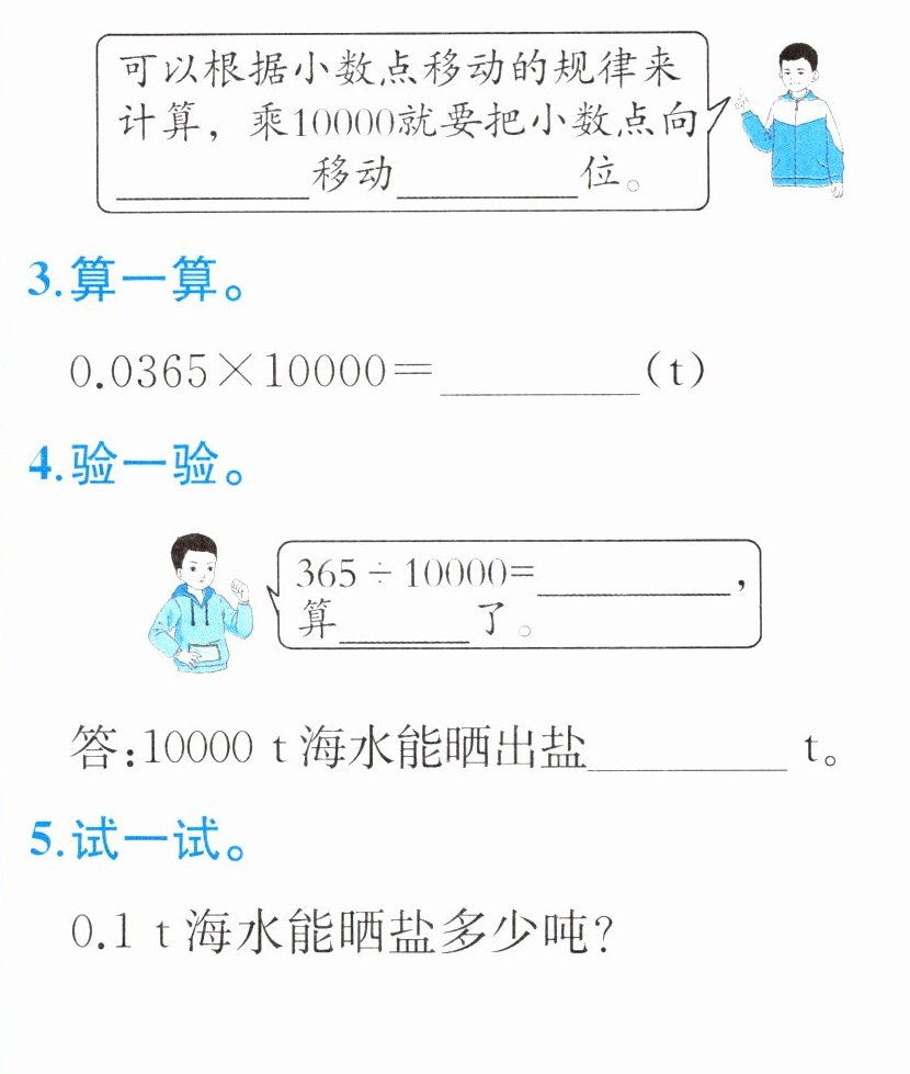10000 t 海水能晒出盐多少吨@@0.0365×10000 @@右@@四@@365@@0.0365 对 365@@365@@0.0365÷10 = 0.00365(t)