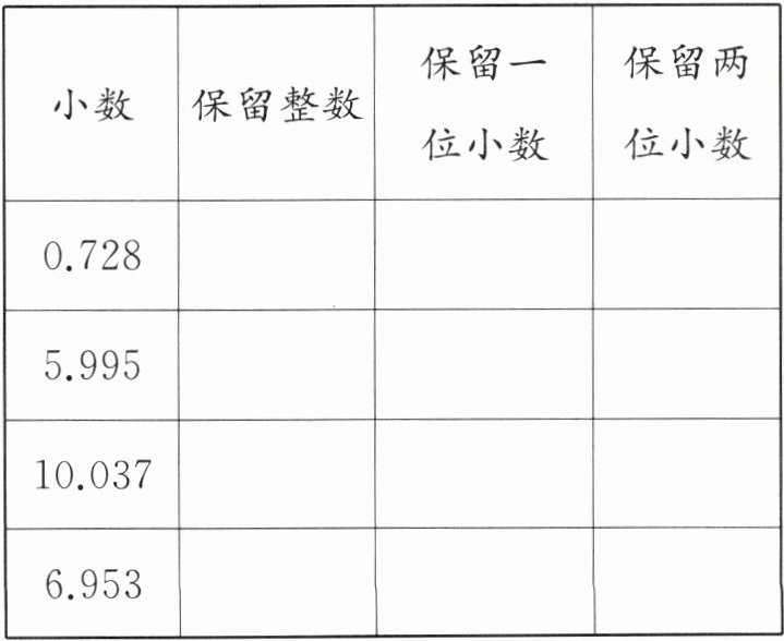 (3)6.972保留整数是( ),保留一位小数是( ),保留两位小数是( )。