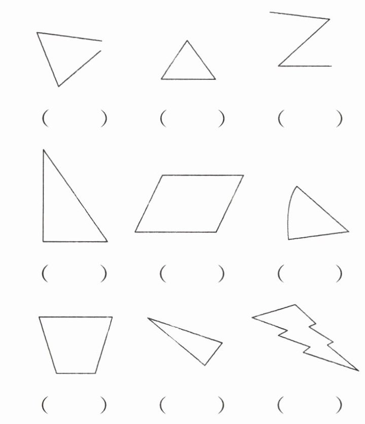 1.下面哪些图形是三角形?是的在下面的( )里画“√”。