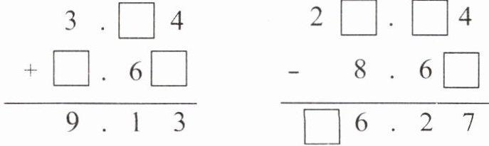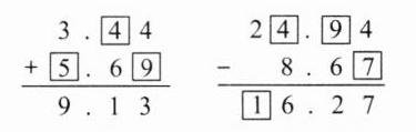 $3.5 - 0.9 =$ $6.8 + 2.7 =$