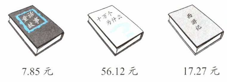 (2)17.27 + 7.85 = 25.12(元) 答:买一本《西游记》和一本《童话故事》一共要花25.12元。