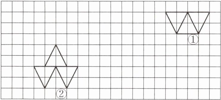 第三步,把图形①中中间的那个三角形先向下平移3格,再向左平移12格(也可以先向左平移12格,再向下平移3格)。