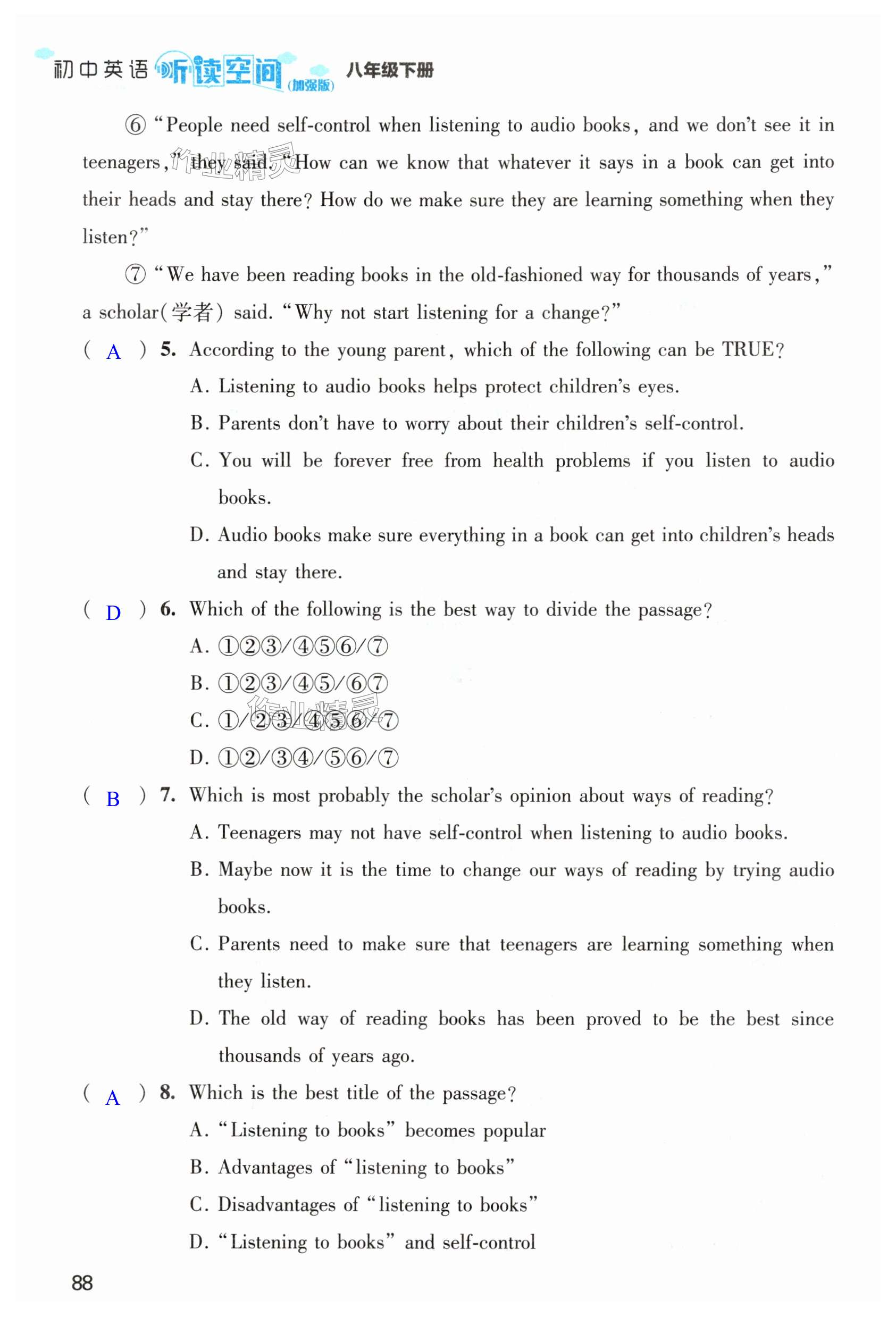 注:目前有些书本章节名称可能整理的还不是很完善,但都是按照顺序排列的,请同学们按照顺序仔细查找。练习册 2025年初中英语听读空间八年级下册译林版加强版 答案主要是用来给同学们做完题方便对答案用的,请勿直接抄袭。