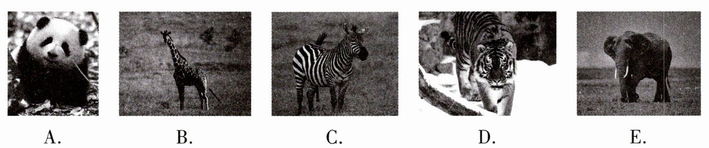 4. ________ It is a large African animal with a very long neck, long legs and dark patches(斑点) on its body.
