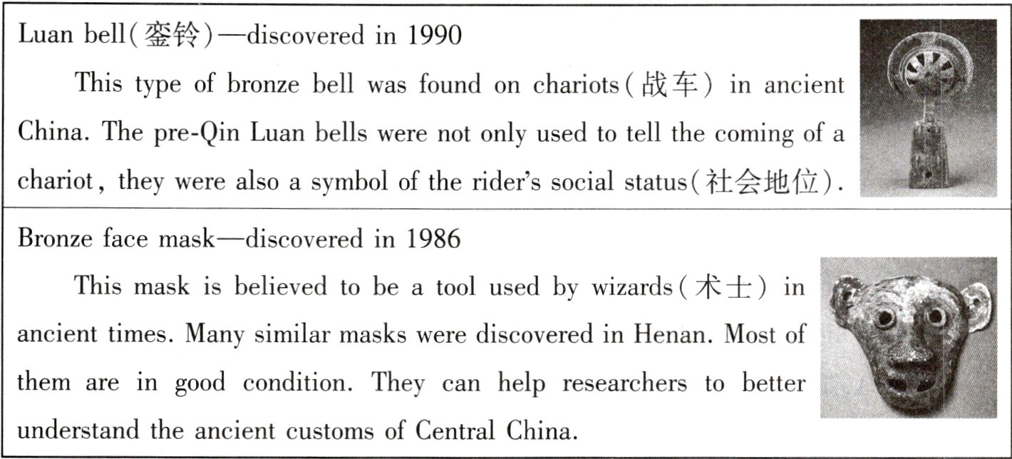 The Henan Museum is home to about 170,000 artifacts(手工艺品). The Central Plains are one of the main birthplaces of Chinese civilization(文明). The artifacts there show the historical development of China.