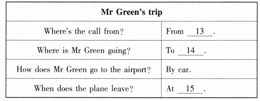 听第一篇短文,回答第13至15小题。请根据短文内容,选择正确答案,完成信息记录表。