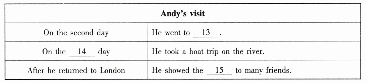听第一篇短文,回答第13至15小题。请根据短文内容,选择正确答案,完成信息记录表。