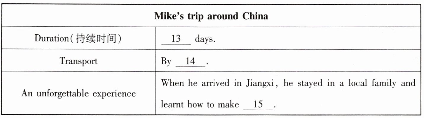 听第一篇短文,回答第13至15小题。请根据短文内容,选择正确答案,完成信息记录表。