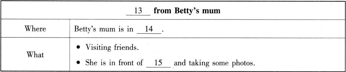 听第一篇短文,回答第13至15小题。请根据短文内容,选择正确答案,完成信息记录表。