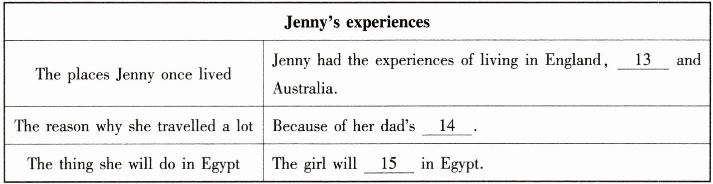 听第一篇短文,回答第13至15小题。请根据短文内容,选择正确答案,完成信息记录表。