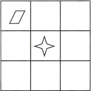 (3) 在☆的北面画○。