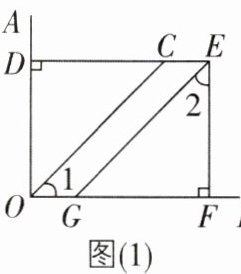 ∴∠1 + ∠2 = 90°. - (3)OC和GE的位置关系为OC//GE. 理由如下: