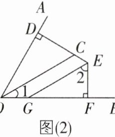 6核心素养推理能力[难]问题情境:已知OC平分∠AOB,CD⊥OA于点D,E为DC延长线上一点,EF⊥OB于点F,EG平分∠DEF交OB于点G,∠DEF + ∠AOB = 180°.