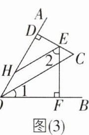 (4)如图(3),当∠AOB为锐角时,若点E为线段DC上一点,EF⊥OB于点F,EH平分∠DEF交OA于点H,其他条件不变. 请写出一个你发现的正确结论.