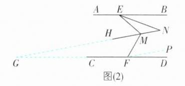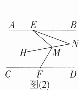 (2),延长$MH$交$DC$的延长线于点$G$,过点$F$作$FP// MG$。因为$EN$平分$\angle BEM$,$\angle BEM = 40^{\circ}$,所以$\angle BEN=\angle MEN = 20^{\circ}$。因为$MH$平分$\angle EMF$,所以$\angle EMH=\angle FMH$,设$\angle EMH=\angle FMH=\alpha$。因为$AB// CD$,由