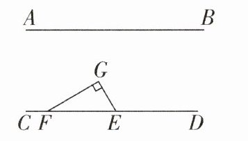 步骤1:将一个含30°角(∠GFE = 30°)的直角三角尺(三角形EFG)如图放置,使得点E,F落在直线CD上,直角顶点G位于两平行线之间;