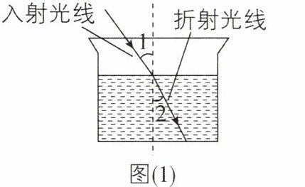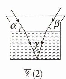 1新考向|跨学科综合[中]如图(1),当光线从空气进入水中时,会发生折射,满足入射角∠1与折射角∠2的度数比为4∶3. 如图(2),在同一平面上,两条光线同时从空气进入水中,两条入射光线与水面夹角分别为α,β,在水中两条折射光线的夹角为γ,则α,β,γ三者之间的数量关系为( )