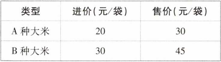 3 [较难]杂交水稻的成功对解决世界粮食不足问题有着重大的贡献,某超市购进 A,B 两种大米销售,其中两种大米的进价、售价如下表: