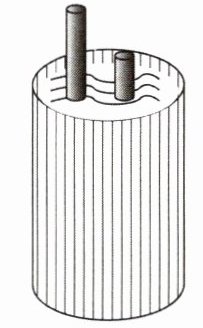 1 [中]如图,两根铁棒直立于桶底水平的木桶中,在桶中加入水后,一根露出水面的长度是它的$\frac{1}{3}$,另一根露出水面的长度是它的$\frac{1}{5}$。两根铁棒长度之和为 55 cm,则较长的铁棒的长度是 ________ cm,此时木桶中水的深度是 ________ cm。