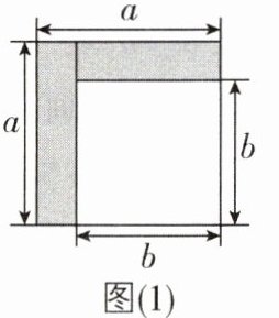 (1)中阴影部分可以看作两个正方形的面积差,即$a^{2}-b^{2}$,题图