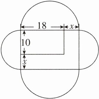 7[2024 江苏镇江期中]如图,若一个长方形广场的长为 18 米,宽为 10 米,现因施工改造,将广场的长和宽各增加$x$米,广场面积增加了 20 平方米,同时沿长方形广场的四边分别向外修建半圆形花圃. 请你计算出花圃的总面积为 ( )