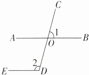 5[2024浙江衢州调研]如图,∠1 = 75°,∠2 = 105°,AB与ED平行吗?为什么?