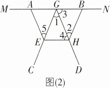 5[2023浙江温州期末]如图,直线EF分别与直线AB,CD相交于点P和点Q,PG平分∠APQ,QH平分∠DQP,并且∠1 = ∠2,说出图中哪些直线平行,并说明理由.