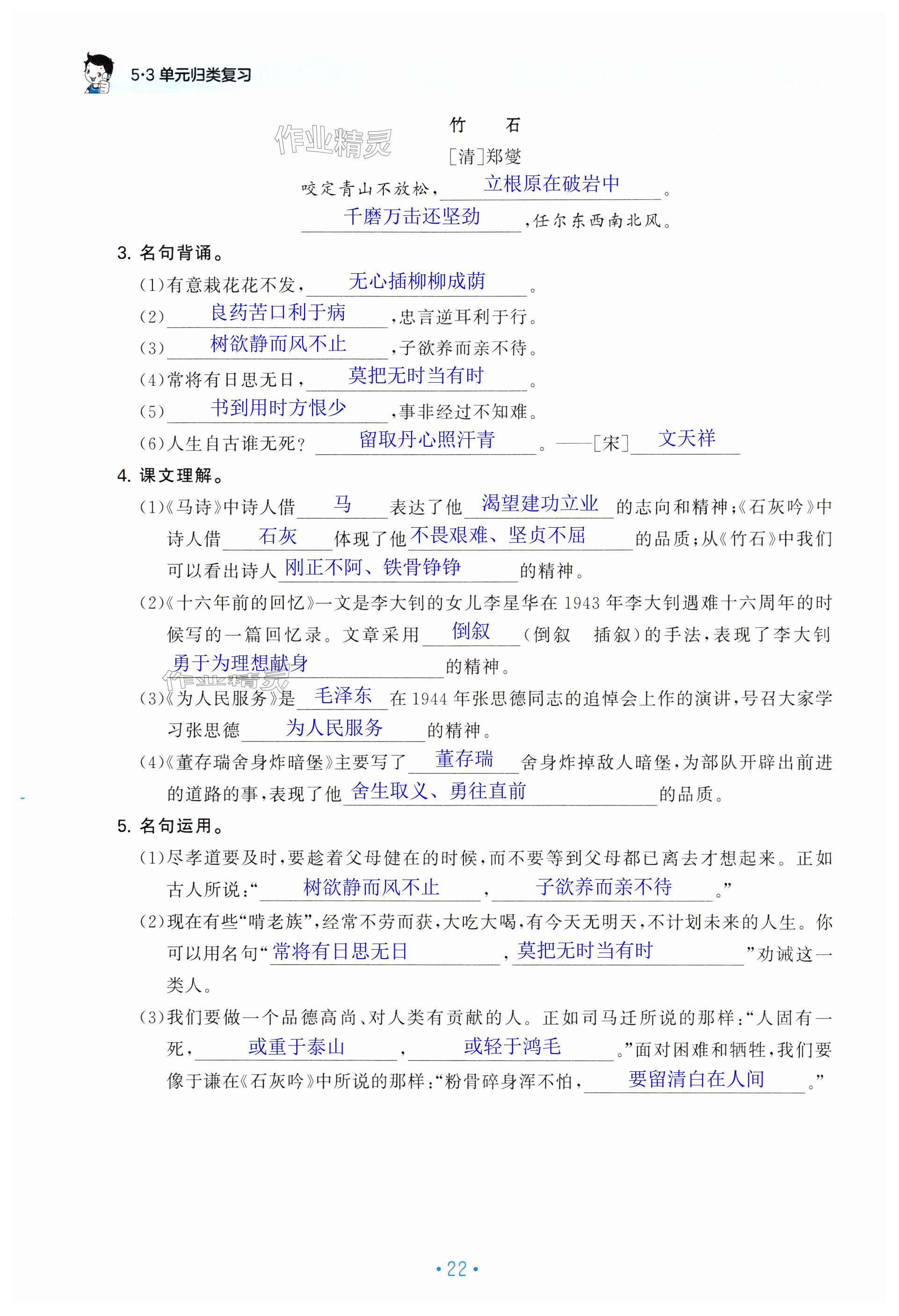 注:目前有些书本章节名称可能整理的还不是很完善,但都是按照顺序排列的,请同学们按照顺序仔细查找。练习册 2025年53单元归类复习六年级语文下册人教版 答案主要是用来给同学们做完题方便对答案用的,请勿直接抄袭。