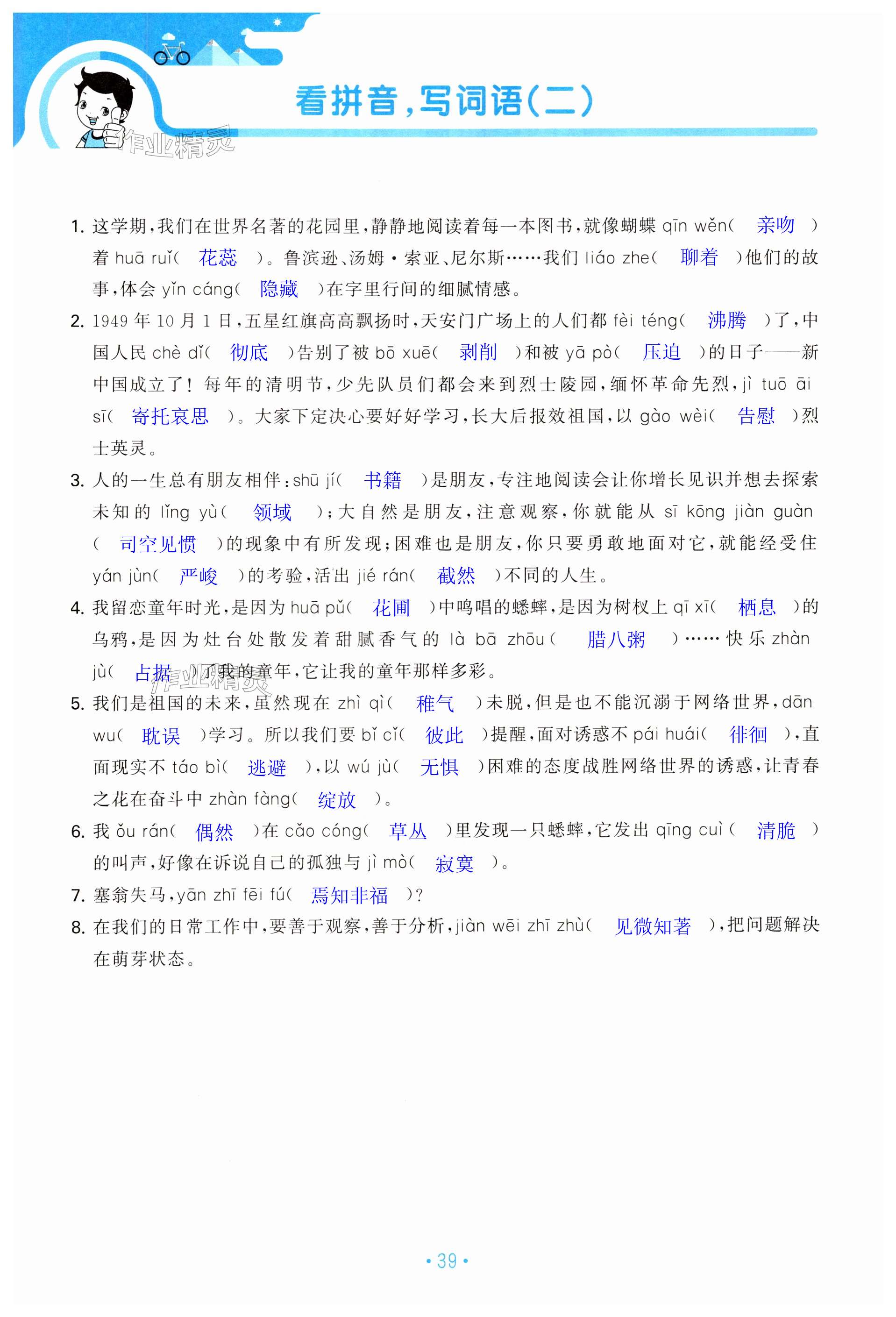 注:目前有些书本章节名称可能整理的还不是很完善,但都是按照顺序排列的,请同学们按照顺序仔细查找。练习册 2025年53单元归类复习六年级语文下册人教版 答案主要是用来给同学们做完题方便对答案用的,请勿直接抄袭。