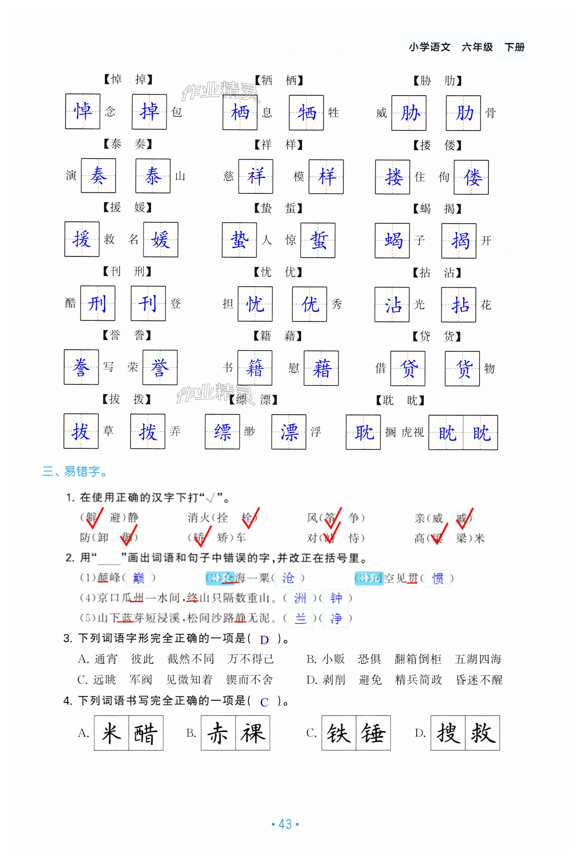 注:目前有些书本章节名称可能整理的还不是很完善,但都是按照顺序排列的,请同学们按照顺序仔细查找。练习册 2025年53单元归类复习六年级语文下册人教版 答案主要是用来给同学们做完题方便对答案用的,请勿直接抄袭。