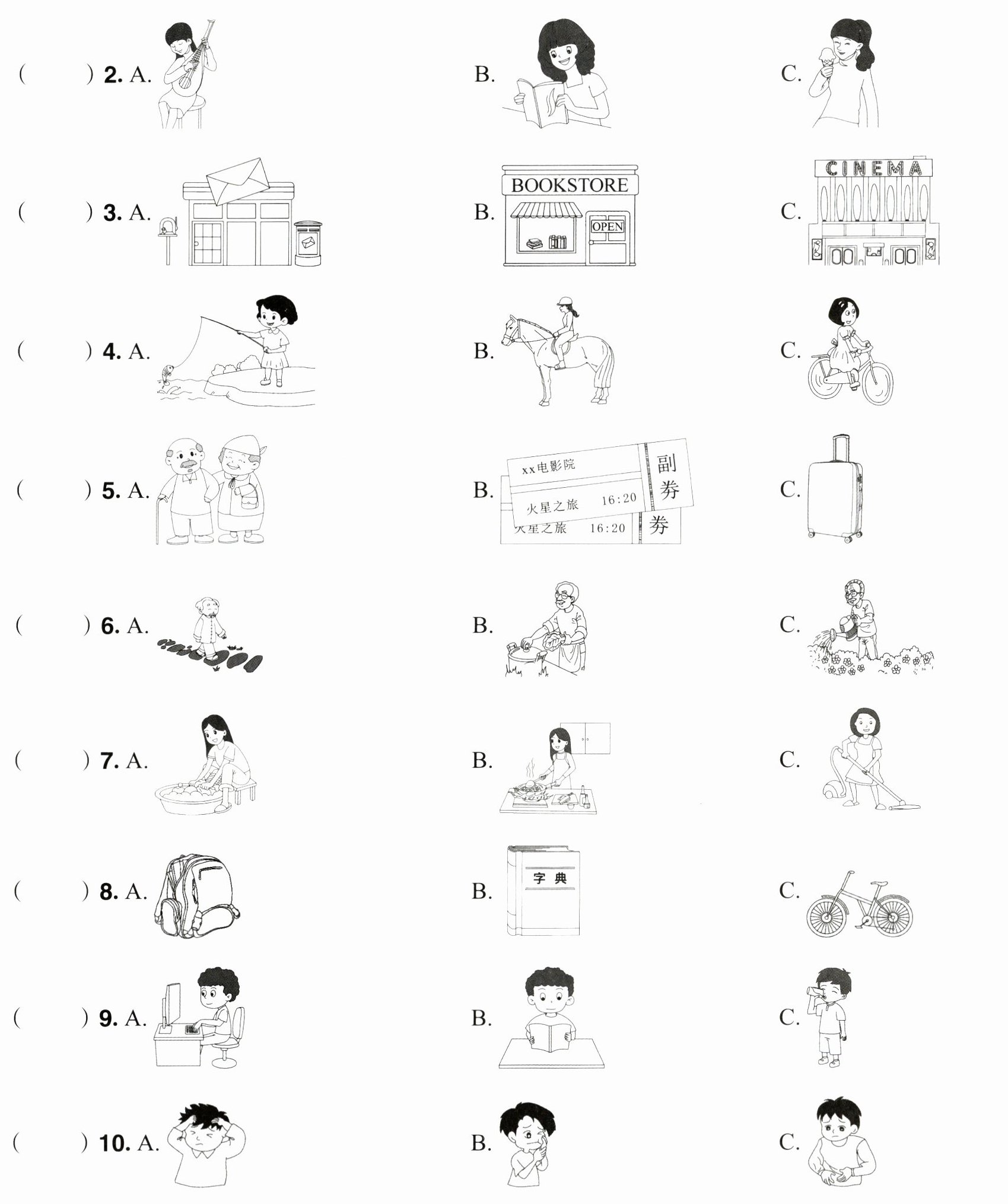 三、Listen and choose. 听句子,选择相应的图片。(10 分)