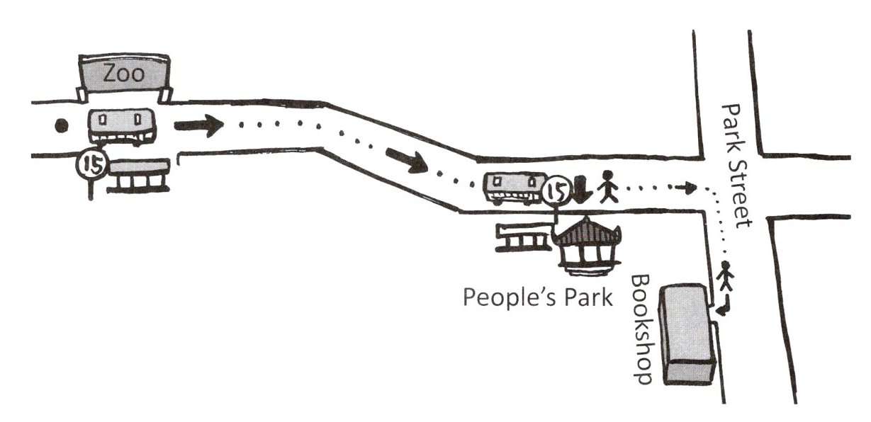 I __________ Bus No. 15 __________ Zoo Stop and __________ People’s Park Stop. Then __________
