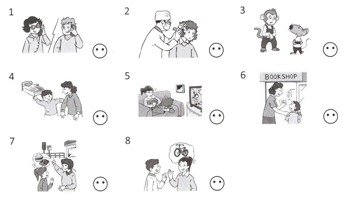 C Listen and judge(听录音,判断图片与所听内容是否相符,用☺或☹表示。)
